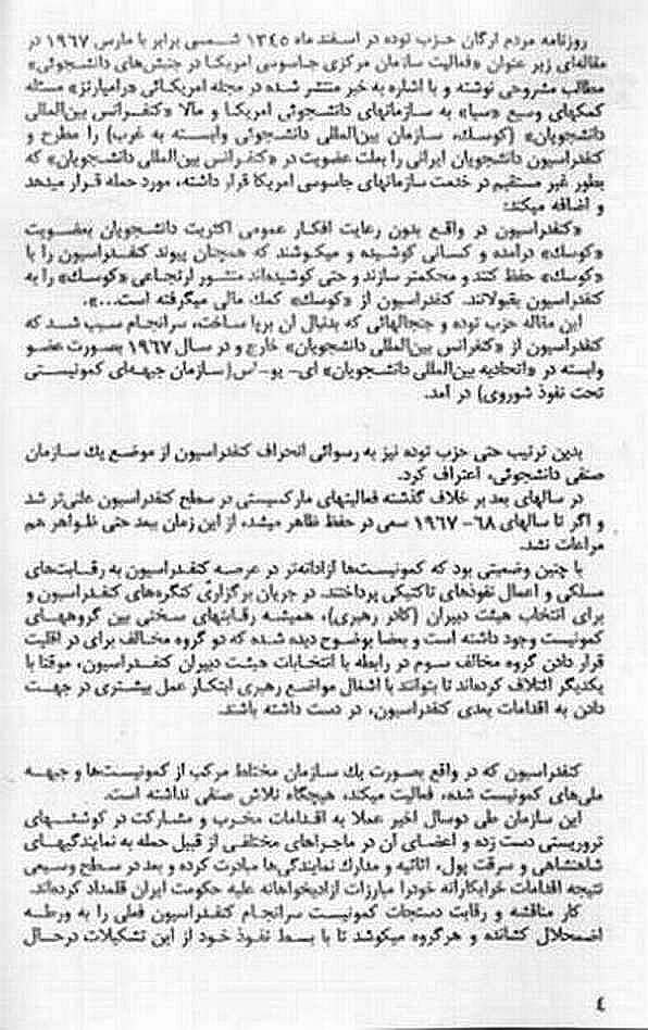 فراتر از آن مقاله علیه کنفدراسیون دانشجویان ایرانی است. واقعیت این است