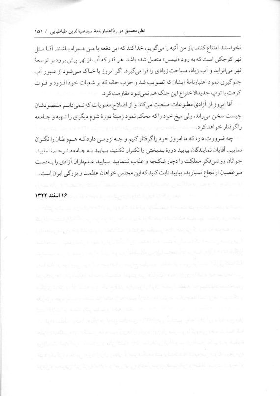 نطق دکتر مصدق در مخالفت با اعتبارنامه